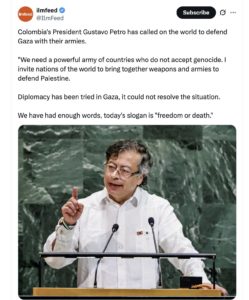 Colombian president 🇨🇴 calls for ‘international army’ to liberate Palestine, end Gaza genocide